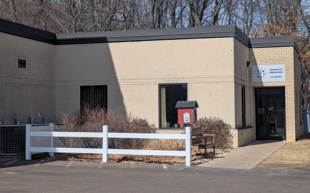 We are located in the facility of Concordia Lutheran Church. To enter the center, please continue through the parking lot and bear left at the trees